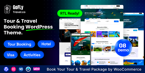 Gofly – Tour Booking and Travel Agency WordPress Theme is a masterfully designed digital solution tailored for travel agencies, tour operators, and adventure planners seeking to elevate their online presence with style and functionality. This WordPress theme seamlessly blends aesthetic appeal with robust performance, creating an immersive platform that captivates visitors from the very first click.